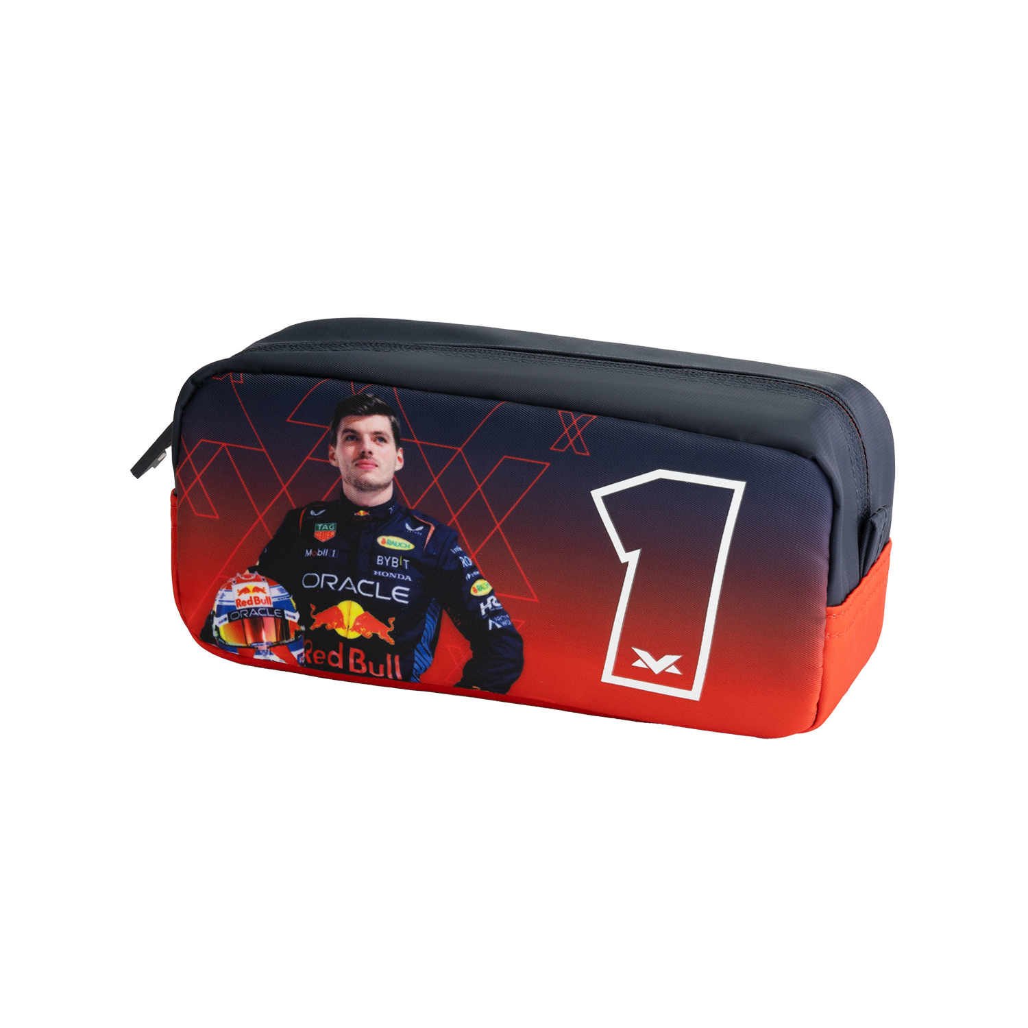 Etui - Racegear - Max Verstappen Met de Max Verstappen Etui maak je zeker indruk, of je nu naar school gaat! Deze stoere etui is perfect om al je pennen, potloden en andere schoolspullen netjes te organiseren, zodat je altijd klaar bent om aan de slag te gaan. Op de voorkant heeft de etui een opvallende print van Max Verstappen en het iconische nummer 1. Dankzij het compacte en stevige ontwerp past de etui makkelijk in elke tas en beschermt hij je spullen optimaal. Perfect voor elke Max Verstappen fan!