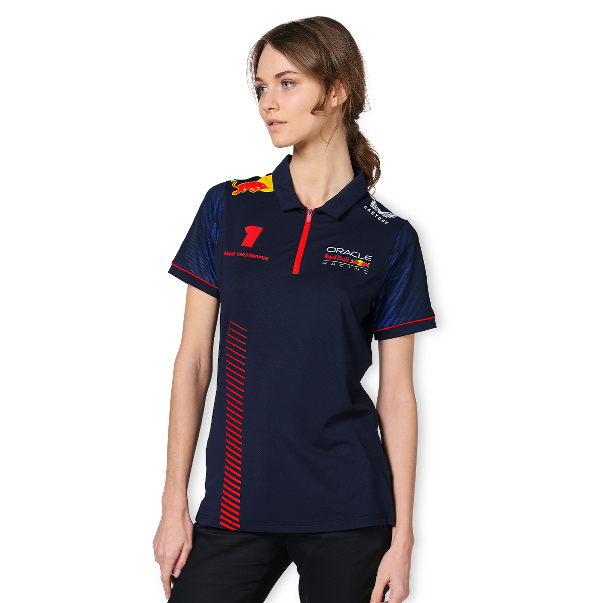 Red Bull Racing fans, deze is voor jullie. De klassieke pasvorm van de Driver Polo 2023 is gecombineerd met authentieke branding en elementen van het Red Bull Racing logo. De polo is voorzien van dryCELL vochtafvoerende technologie voor comfortabel dragen de hele dag door.   De Red Bull Racing Teamline Driver Polo voor dames 2023 is een exacte replica van het Red Bull Racing team tenue welk wordt gedragen tijdens het formule 1 seizoen van 2023 door zowel het team als Max Verstappen zelf.   De Red Bull Racing Driver Polo is een echte must-have voor de diehard Formule 1 en Red Bull Racing fans en is perfect om te dragen tijdens de warmere racedagen!     Eigenschappen Red Bull Racing Dames Driver Polo 2023: * Oracle Red Bull Racing Teamline 2023 * 83% Polyester en 17% Elastaan * Team/partner logo's op voorkant, achterkant en mouw * Red Bull Racing logo op achterkant * Ritssluiting * DryCELL technologie   Onderhoudsinstructies: * De opdruk niet strijken * Wasmiddel voor de gekleurde was