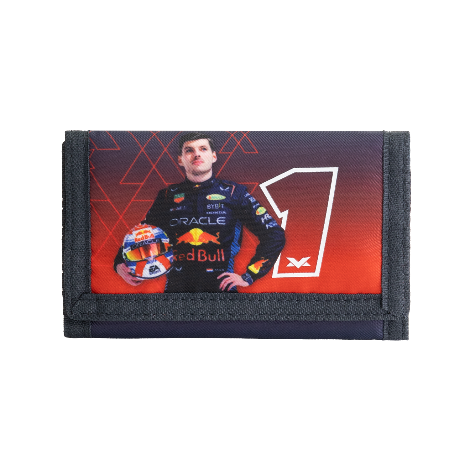 Portemonnee - Racegear - Max Verstappen Met de Max Verstappen Portemonnee voor kids maak je zeker indruk, of je nu naar school, sport of op pad gaat met vrienden! Deze stoere portemonnee is speciaal ontworpen voor kinderen, met meerdere vakjes om pasjes, briefgeld en kleingeld netjes op te bergen. Op de voorkant staat een opvallende print van Max Verstappen en het iconische nummer 1, waardoor elke jonge fan hem graag bij zich draagt. Dankzij het compacte formaat past de portemonnee makkelijk in een rugzak of jaszak. Perfect voor dagelijks gebruik! Eigenschappen: * Materiaal: Twill Nylon * Polyester voering * Formaat: 9 x 14 cm