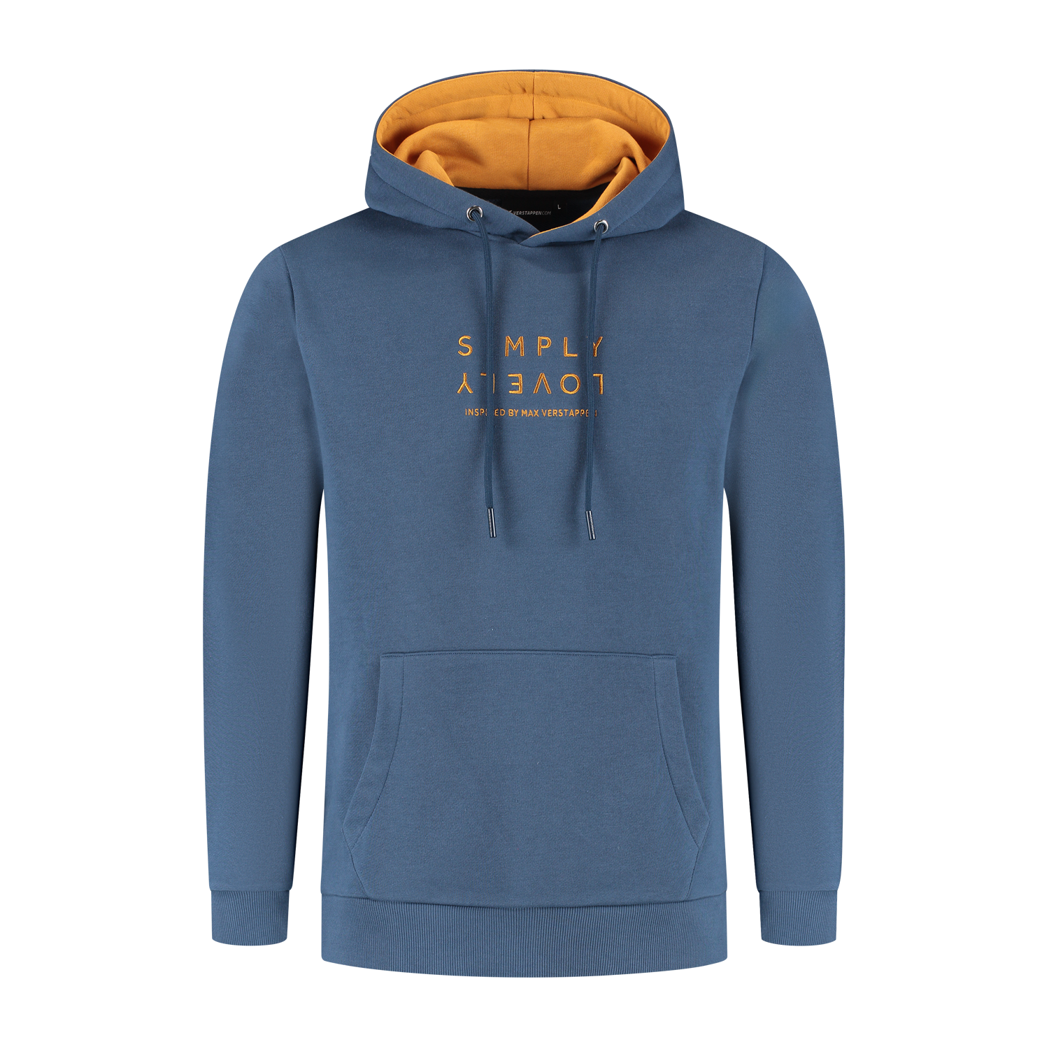 MV Hoodie - Simply Lovely - Navy De MV hoodie bestaat uit 80% katoen en 20% Polyester. Deze hoodie is uitgerust met de iconische uitspraak 'Simply Lovely' en de inspirerende slogan "Keep pushing the limits". Een absolute must-have voor elke Max Verstappen-fan die op zoek is naar een stijlvolle casual uitstraling met kwaliteit. Eigenschappen MV Hoodie: * 80% Cotton, 20% Polyester * Regular fit * Verfijnde embroidery op de borst in contrast kleur * Branded label aan de zijkant in contrast kleur * Tonale koordjes * Kangaroo zakken * Metalen koordoogjes en koorduiteinde * Capuchon gevoerd met contrast kleur * Contrast nek tape Onderhoudsinstructies: * Wasmiddel voor de gekleurde was gebruiken * Binnenstebuiten wassen en strijken * Was met gelijke kleuren