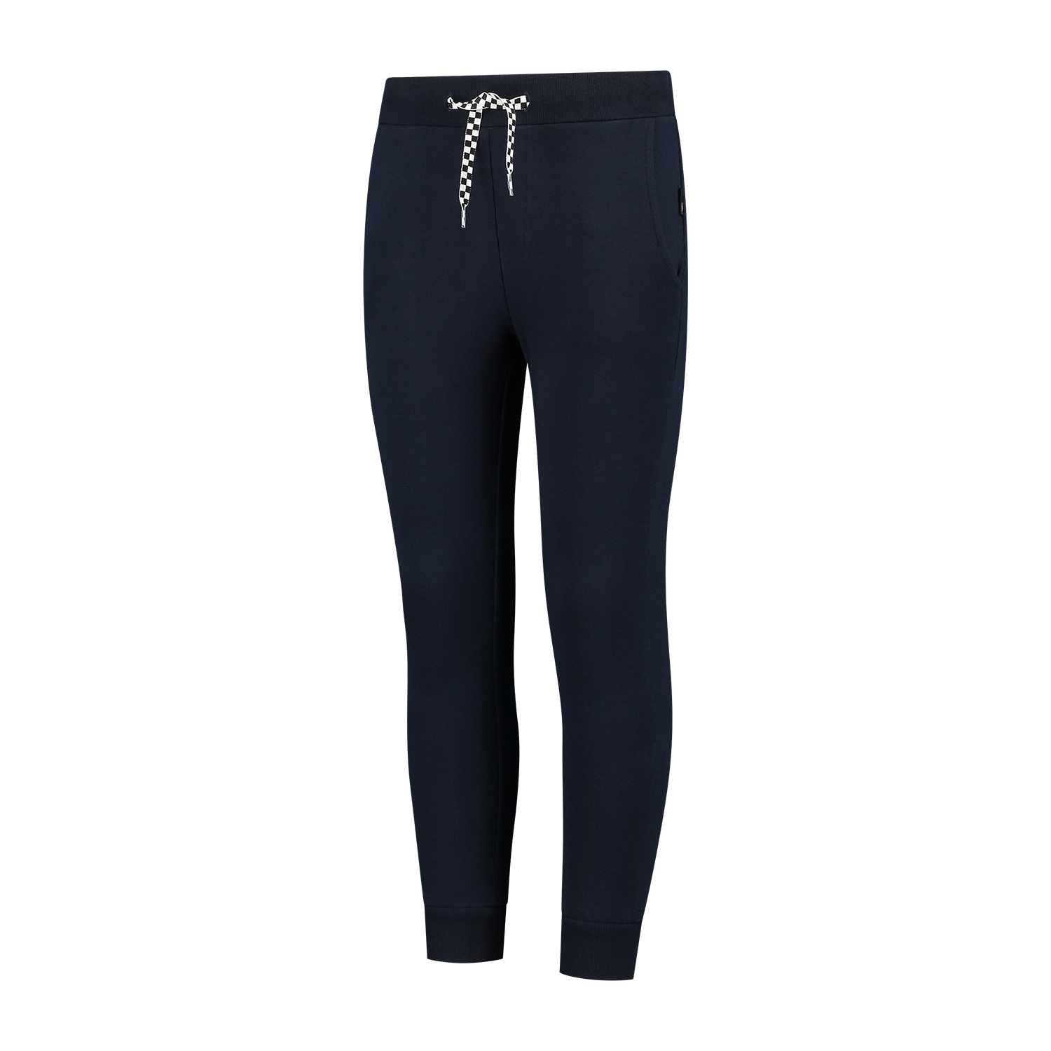 MV Kids - Jogger Navy   De MV Kids Jogger is perfect voor jonge Max Verstappen fans die comfort en stijl willen combineren. Met een elastische waistband, stoere finishvlag touwtjes en handige steekzakken, is deze sweatpant ideaal voor dagelijks gebruik. Gemaakt van zacht en comfortabel materiaal, biedt hij een sportieve look en is geschikt voor zowel ontspanning als activiteiten. Een must-have voor elke jonge raceliefhebber! Eigenschappen: * Materiaal:  63% Oragnisch Katoen, 32% Recycled Polyster, 5% Elastaan * Achterzak * Steekzakken * Elastieken waistband * MV woven zijlabel * Geweven nektape in finishvlag stijl