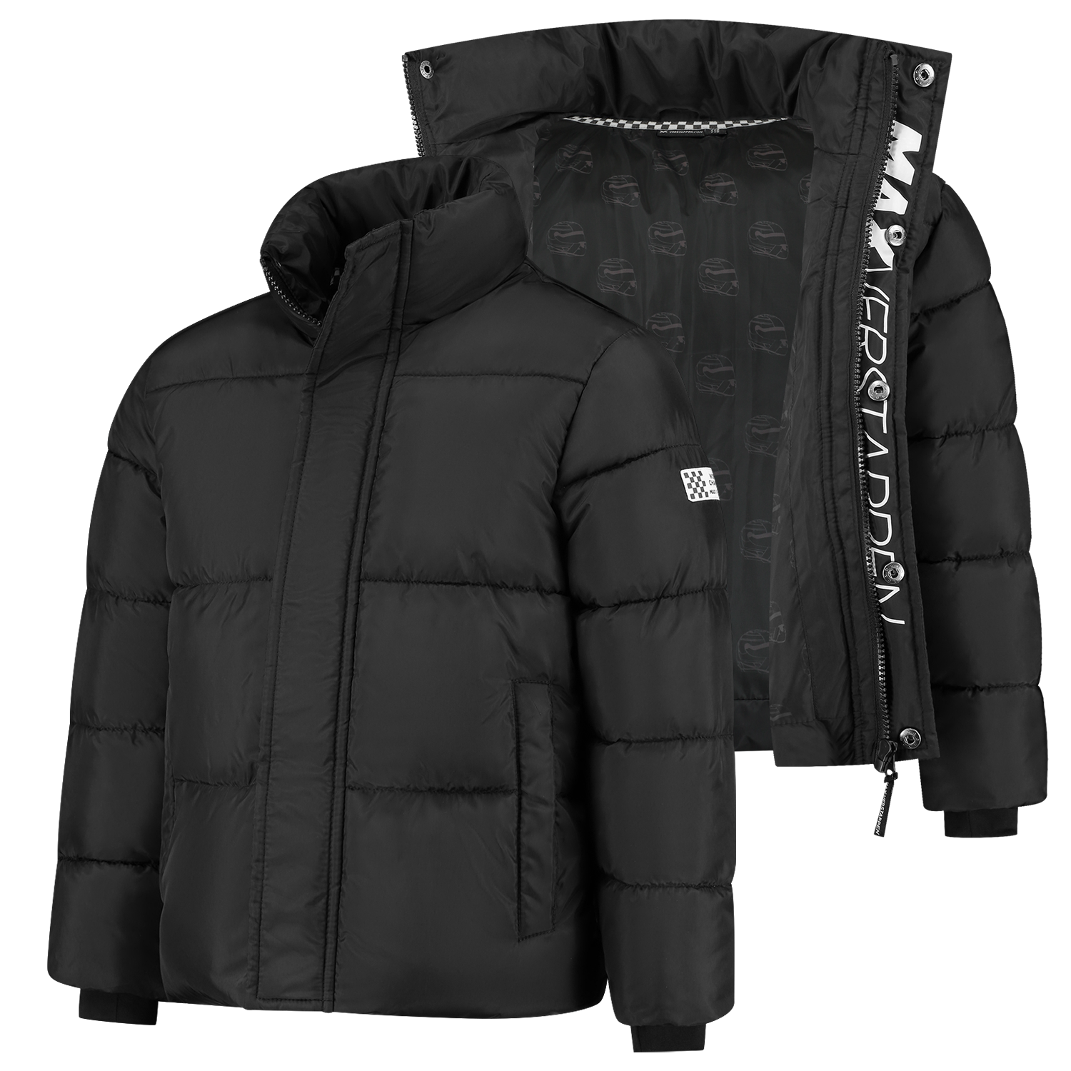 Houd je jonge Max Verstappen fan warm en stijlvol met de MV Kids Winterjas ! Deze jas heeft een Max Verstappen print aan de binnenzijde van de sluiting en een all-over print van helmpjes in de binnenvoering. Ideaal om je kind warm te houden tijdens de winter en om zijn steun voor Max te tonen, zelfs buiten het raceseizoen. Perfect voor avonturen in de buitenlucht! Bestel nu en laat je kind fashionable de winter doorbrengen! Eigenschappen: * Materiaal:100% Gerecycled Polyester * Gewatteerd * Winddicht * Geweven patch op de mouw * Padded branded zipperpuller * Plastic rits * 'Max Verstappen' print aan binnenzijde sluiting * Drukknopen * MV geweven zijlabel * Geweven nektape in finishvlag stijl * All over print van helmpjes in binnenvoering * Steekzakken Onderhoudsinstructies: * De opdruk niet strijken * Wasmiddel voor de gekleurde was gebruiken * Binnenstebuiten wassen en strijken * Was met gelijke kleuren