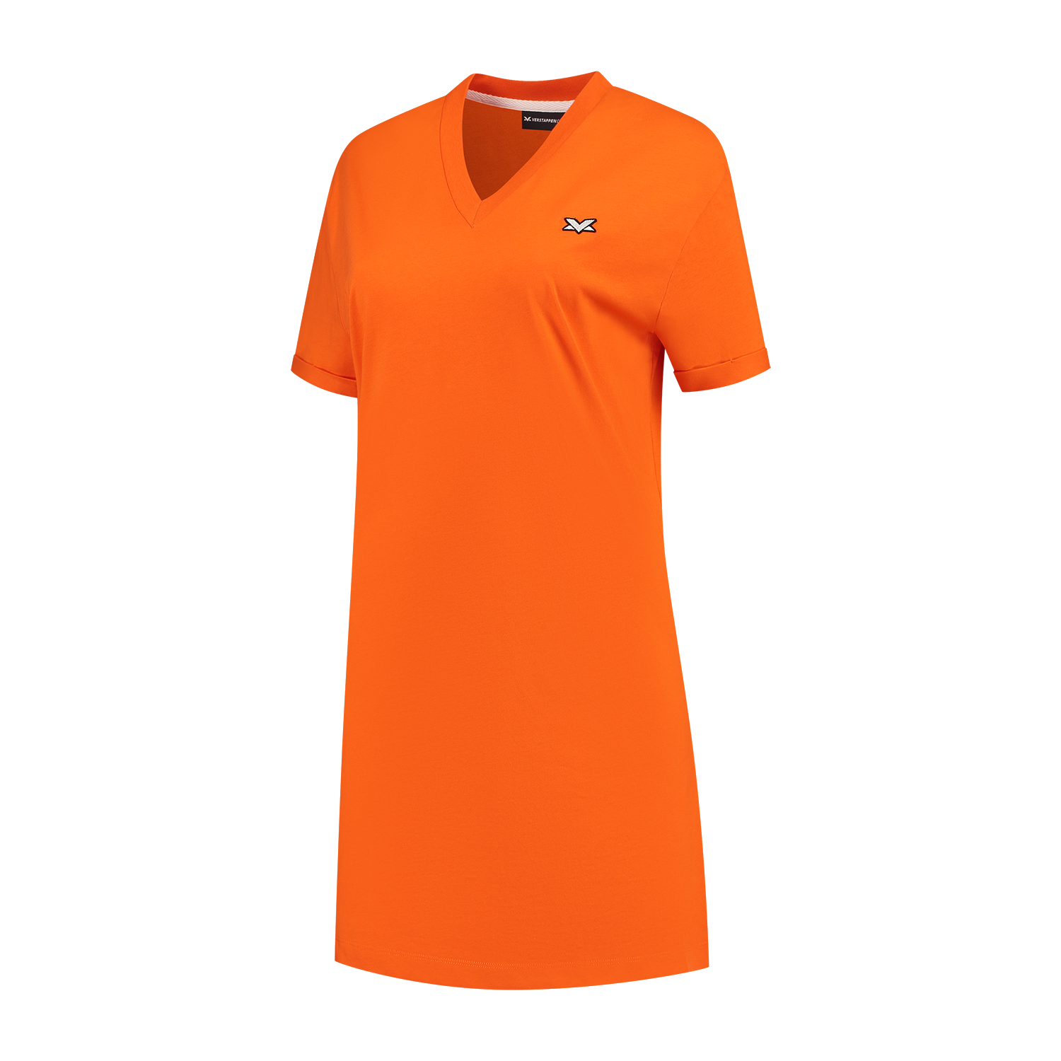 MV T-shirt Jurk - Oranje De MV oranje jurk bestaat uit 100% katoen. Deze jurk is uitgerust met het kenmerkende Max Verstappen logo op de voorzijde en de inspirerende slogan "Keep pushing the limits". Een absolute must-have voor elke Max Verstappen-fan die op zoek is naar een stijlvolle casual uitstraling met kwaliteit. Eigenschappen: * Materiaal: 100% Katoen * V hals opening * Geborduurd MV logo * Contrasterende witte nek taping * Gewoven labelĀ  Onderhoudsinstructies: * De opdruk niet strijken * Wasmiddel voor de gekleurde was gebruiken * Binnenstebuiten wassen en strijken * Was met gelijke kleuren