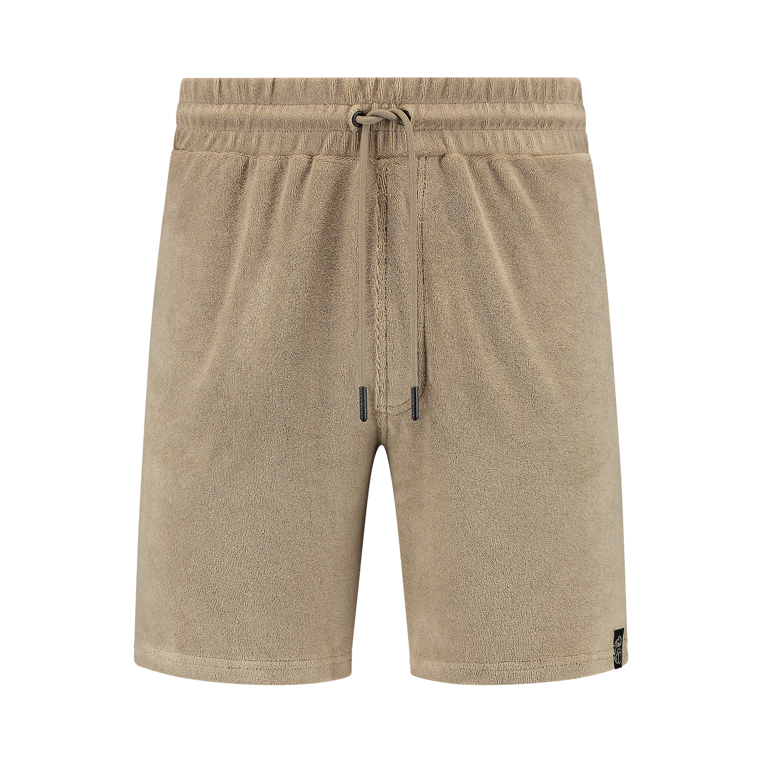 Unleash The Lion Terry Shorts - Licht Brui n    Unleash The Lion - a collection capturing the essence of perseverance, determination, and unwavering focus, inspired by the spirit of Max Verstappen. Each piece in this collection is crafted with the highest quality materials to inspire you to unleash your inner lion, harnessing Max's strength and fearlessness to unlock your maximum potential. Embrace the same mindset that ignites Max to victory on the track. It's time to unleash your inner lion. Eigenschappen: * 100% Katoen (Terry/badstof) * 260 GMS * Comfortable short in terry stof * Unisex te dragen * Elastieken waistband met koordsluiting * Woven label onderaan de pijp * Branded metalen koordstoppers * Fake achterzak   Onderhoudsinstructies: * Wasmiddel voor de gekleurde was gebruiken * Binnenstebuiten wassen en strijken * Was met gelijke kleuren